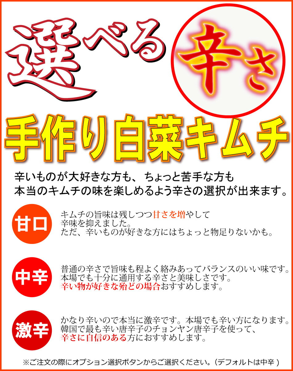 キムチ 白菜キムチ 激辛・甘口・中辛から辛さが選べる 本場のキムチ 500g 冷蔵発送