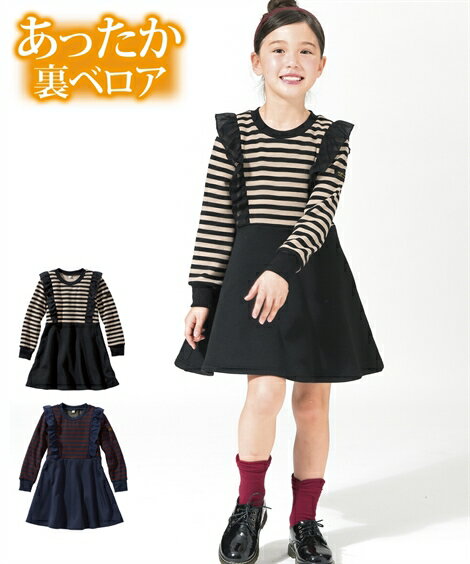 ワンピース キッズ あったか裏ベロアドッキング 女の子 子供服 ジュニア服 チュニック ネイビー/黒 身長100/110/120/130cm ニッセン