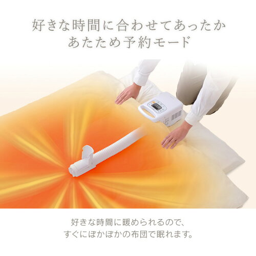 ◆簡単セッティングホースを伸ばして、ふとんをかぶせてボタンを押すだけでふかふかのあったかふとんが完成します。