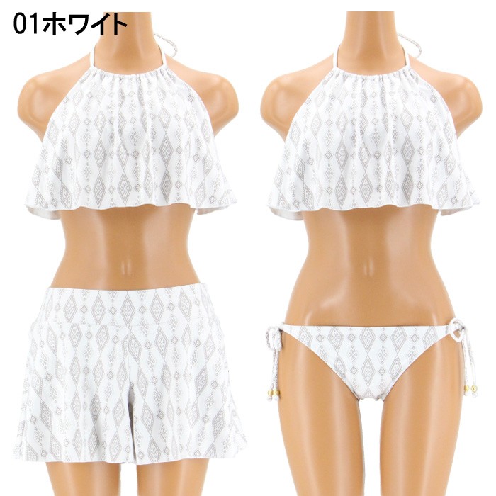 【san-ai resort】Angelica Garla フレアハイネック 3点セット水着 9号 水着 みずぎ ミズギ 3点セット水着 レディース水着